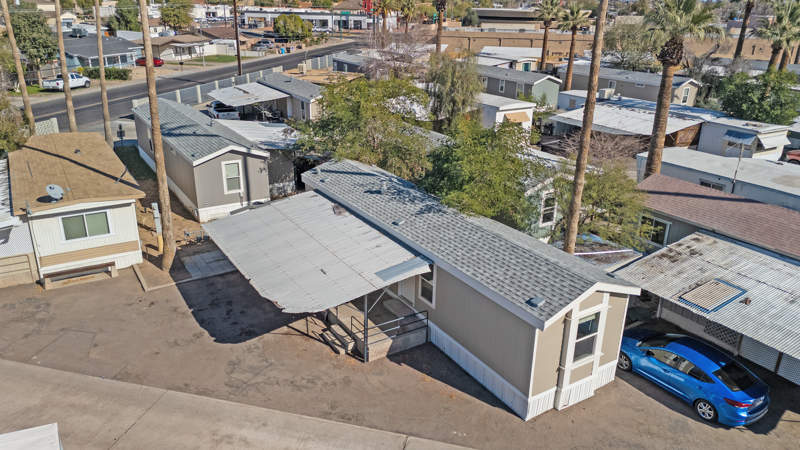 This 720 square feet manufactured home in Christown, Phoenix, AZ, was built in 2018 by Champion. The cozy home features 2 bedrooms and 1 bathroom, perfect for a small family or couple. Inside, you will find a spacious living room, a fully equipped kitchen with modern appliances such as an oven, fridge, microwave, and garbage disposal. A new gas water heater has been installed at the property.