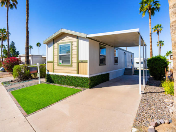 This beautiful 896 square foot manufactured home in Prince Park Tucson features 3 bedrooms and 2 bathrooms. Built in 2018 by Cavco, the home boasts a spacious living room, a separate dining room area, a master bedroom with an en suite bathroom and walk-in closet, a bonus room that can be used as an office or guest room, and a fully equipped kitchen. The exterior of the home includes a patio for outdoor entertaining and is situated on a corner lot for added privacy.